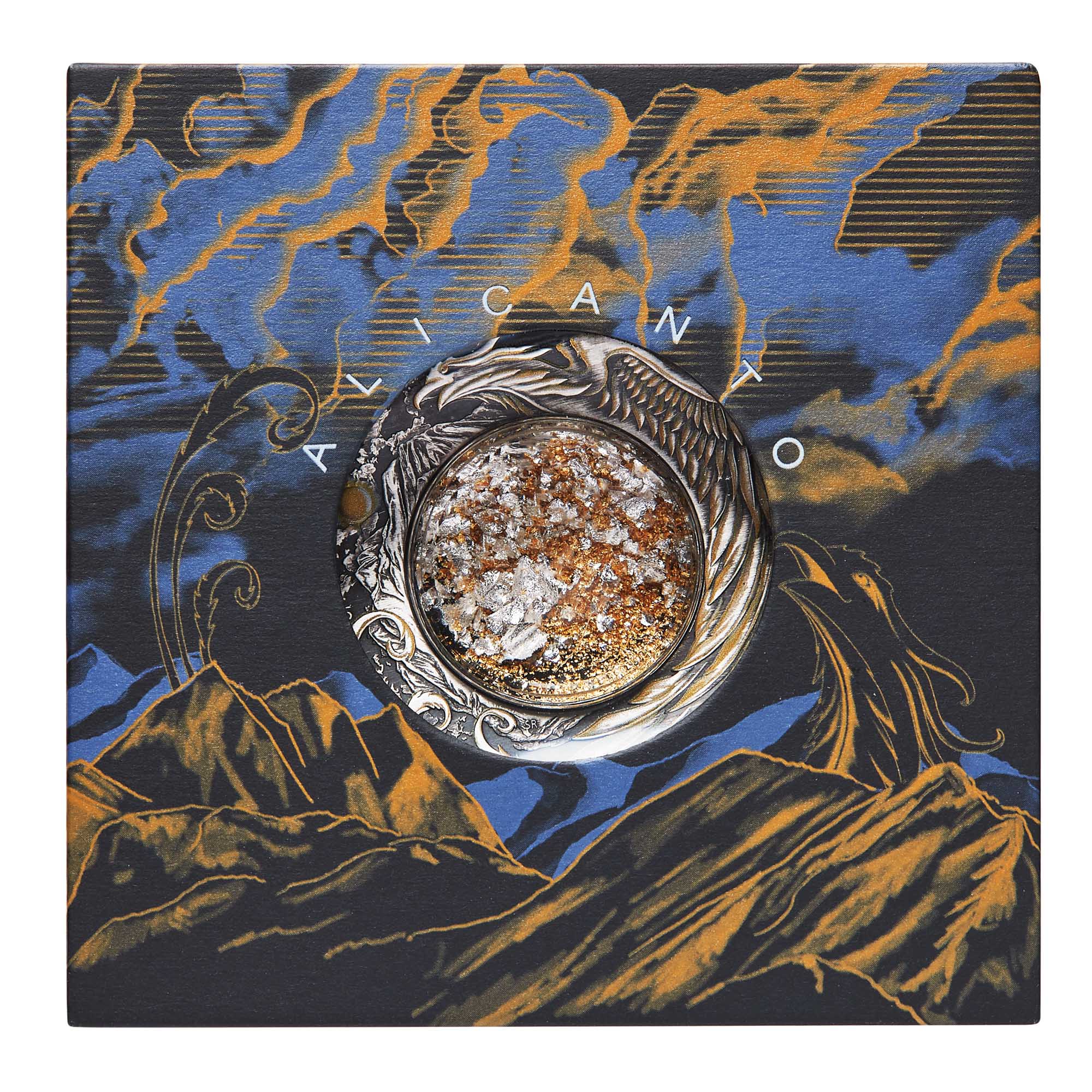 The coin is housed in an illustrated dislay case with a unique keyhole design to view the gold and silver particles floating in the Perspex dome, all visible without having to open the case. The packaging is embellished with elements of mysticism, featuring an intriguing circular design that is highlighted by a mesmerising illustration of the magical Alicanto bird surveying the desert landscape. The release is accompanied by a numbered certificate of authenticity.