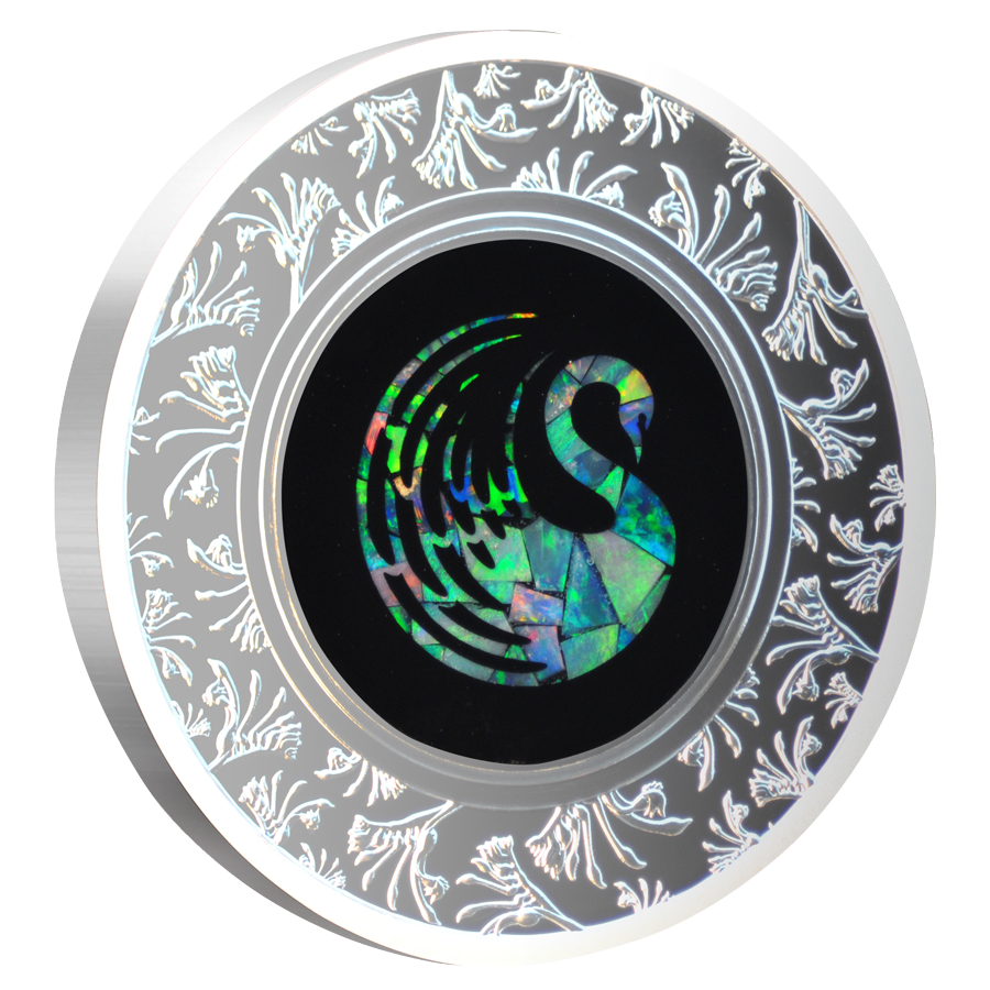 Fine silver swan with opal inlay medallion