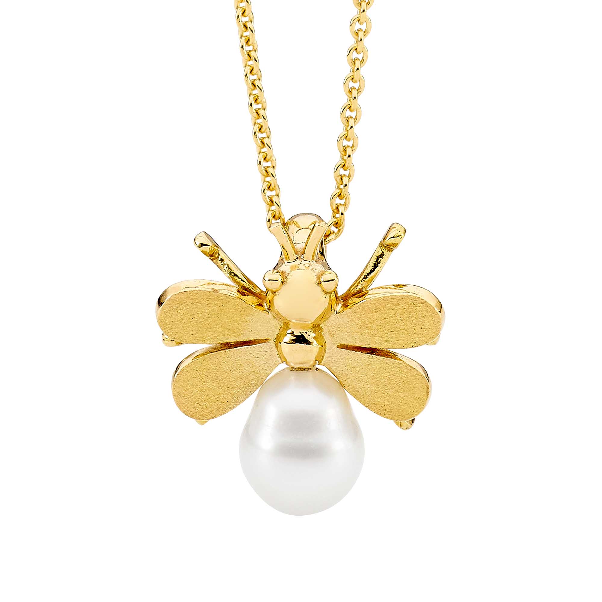 The beauty of some of natures hardest workers is celebrated with this petite pendant crafted from 18 carat yellow gold and adorned with a lustrous South Sea Pearl.